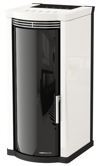 IN MORETTI DESIGN IL VETRO DIVENTA MAGICO. Trattasi di un vetro temprato (resistente alle alte temperature) non smaltato, ma plasmato con una speciale mescola hi-tech, che lo rende TOTALMENTE OSCURATO, impedendo la visione della camera di combustione se quest’ultima è sprovvista di fiamma, quindi a stufa spenta. I vantaggi del VETRO TOTALMENTE OSCURATO sono principalmente 2: l’impreziosito design che la stufa acquisisce e il non dover obbligatoriamente pulire il vetro della stessa quando si è impossibilitati a farlo. Il vetro diventa MAGICO nel momento, invece, in cui la stufa si accende… come per magia consente la visione della fiamma al pari di qualunque altro vetro sino allo spegnimento della stufa, a seguito del quale torna ad essere oscurato divenendo nuovamente un gioiello d’arredamento.